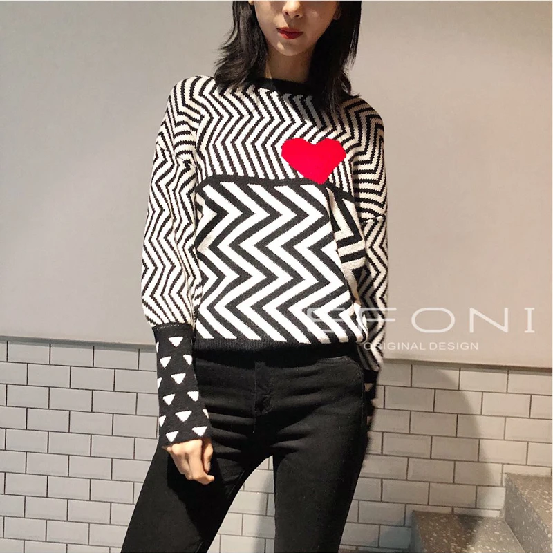 Special Offer Топы с длинным рукавом и геометрическим узором в виде сердца, милые пуловеры, вязаные свободные свитера, топы 2019, осенне зимние женские свит... Discount 34% Today!
