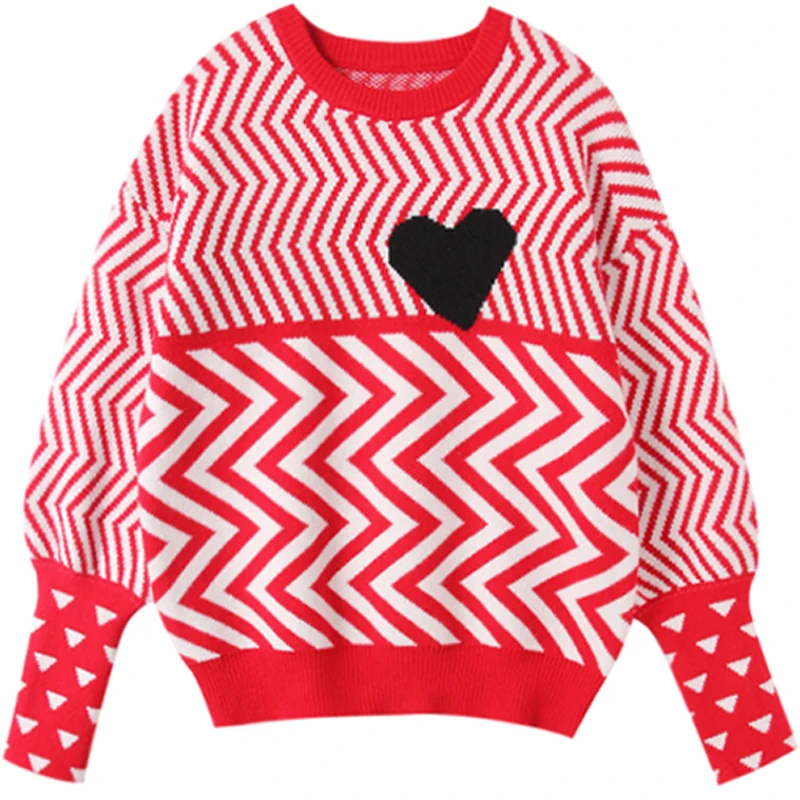 . [Скидка 34%] Купить Топы с длинным рукавом и геометрическим узором в виде сердца, милые пуловеры, вязаные свободные свитера, топы 2019, осенне зимние женские свит... Продажа Дешево.