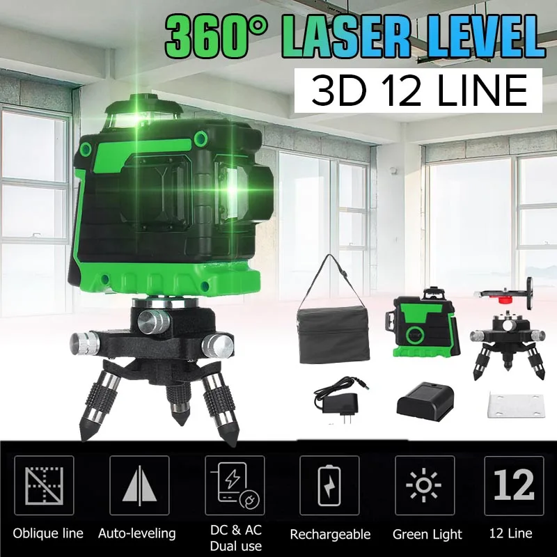 . [Скидка 0%] Купить 12 линий 3D лазерный уровень самонивелирующийся 360 горизонтальный и вертикальный крест супер мощный зеленый лазерный луч линия + 5800 мач батар... Продажа Дешево.