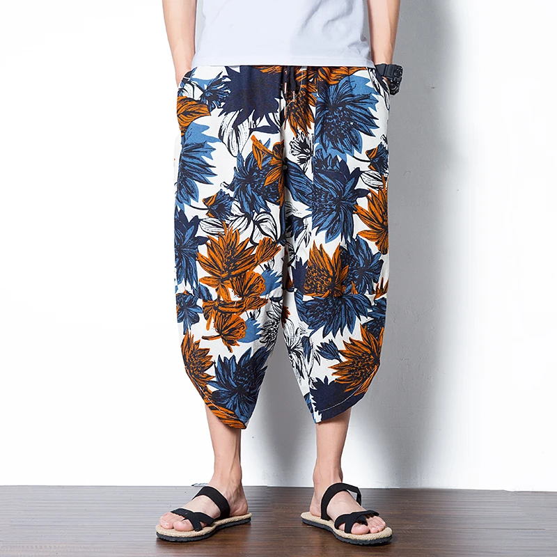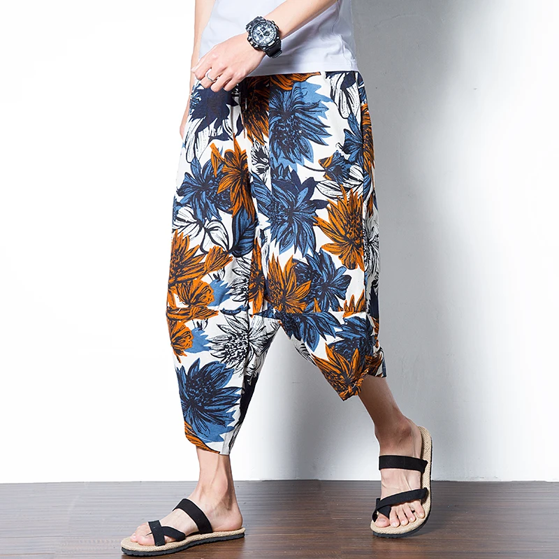 . [Скидка 0%] Купить Для мужчин льняные хлопковые брюки лето мужской широкий промежности шаровары свободные большой Подрезанные штаны широкие шаровары китайс... Цена Дешево.