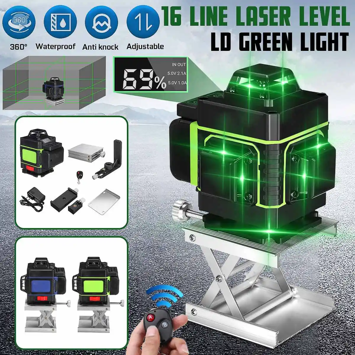 . [Скидка 48%] Купить Лазерный уровень 16 линий 3D самонивелирующийся 360 горизонтальный и вертикальный крест супер мощный зеленый лазерный луч линии Цена Дешево.