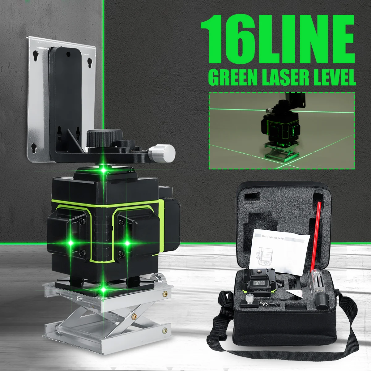 . [Скидка 52%] Купить 4D 16 линий лазерный уровень самонивелирующийся 360 градусов вращающийся горизонтальный и вертикальный крест зеленый лазерный уровень с пуль... Продажа Дешево.