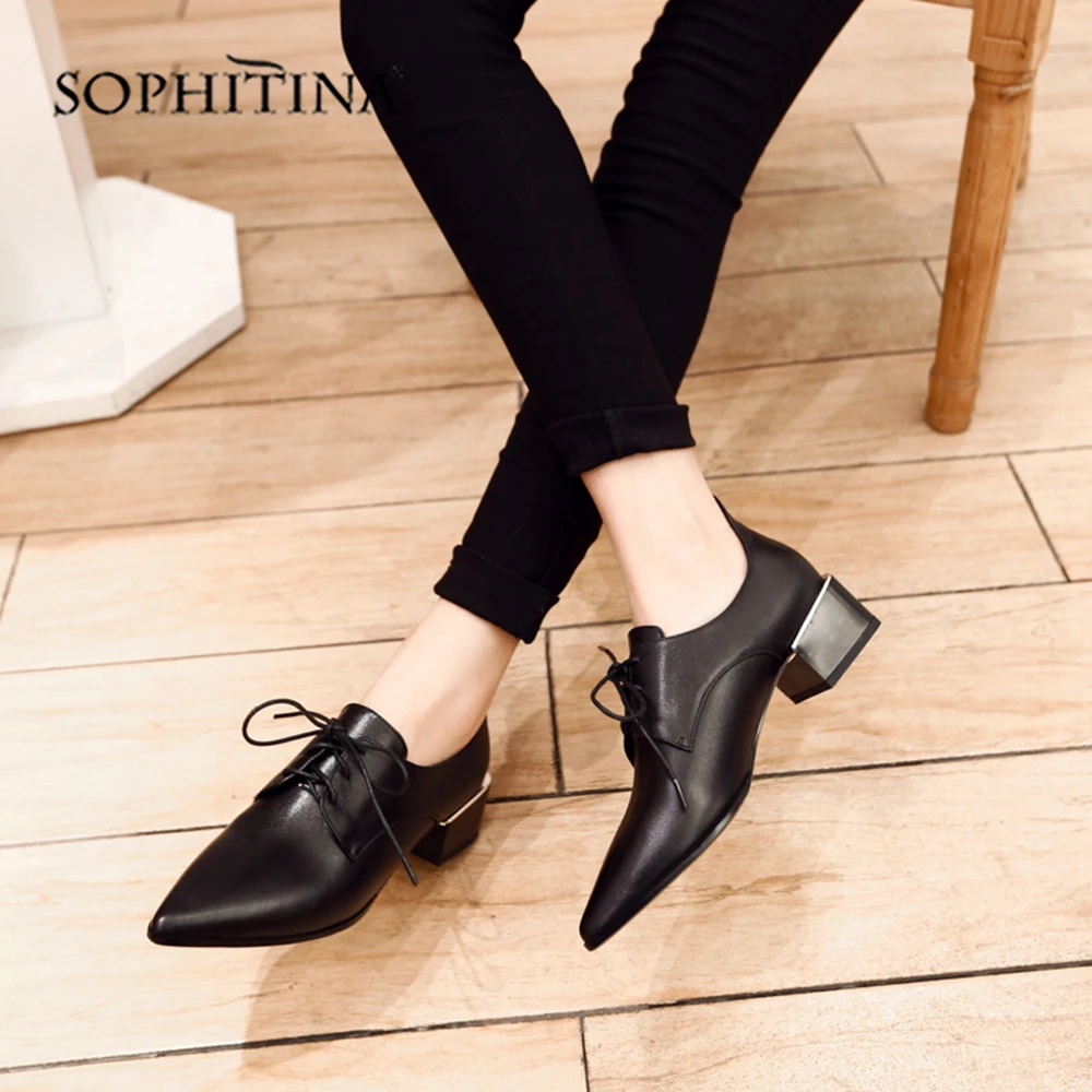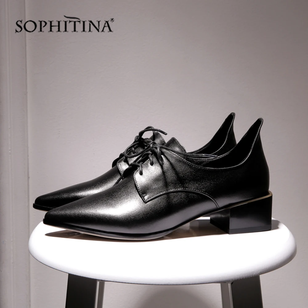 Special Offer SOPHITINA Повседневные туфли лодочки с острым носком обувь на шнуровке из высококачественной натуральной кожи на квадратном каблуке средней вы... Discount 53% Today!